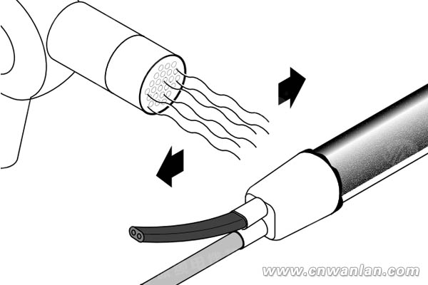 4、使用热风枪加热热缩管套,保持来回均匀加热,使热缩管套收缩。当完全密封的包裹在端部时,停止加热,如果继续加热,热缩管套不会出现继续收缩现象,如图3。