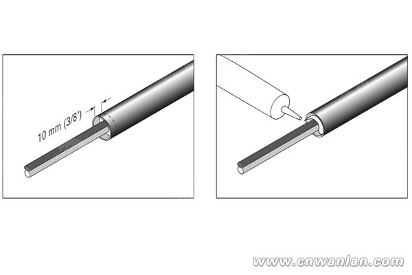 8、再使用热风枪加热电伴热带烟气采样管两端,使里面的RTV胶水溢出,并完全侵入管束两端,而后冷却即可,如图5。